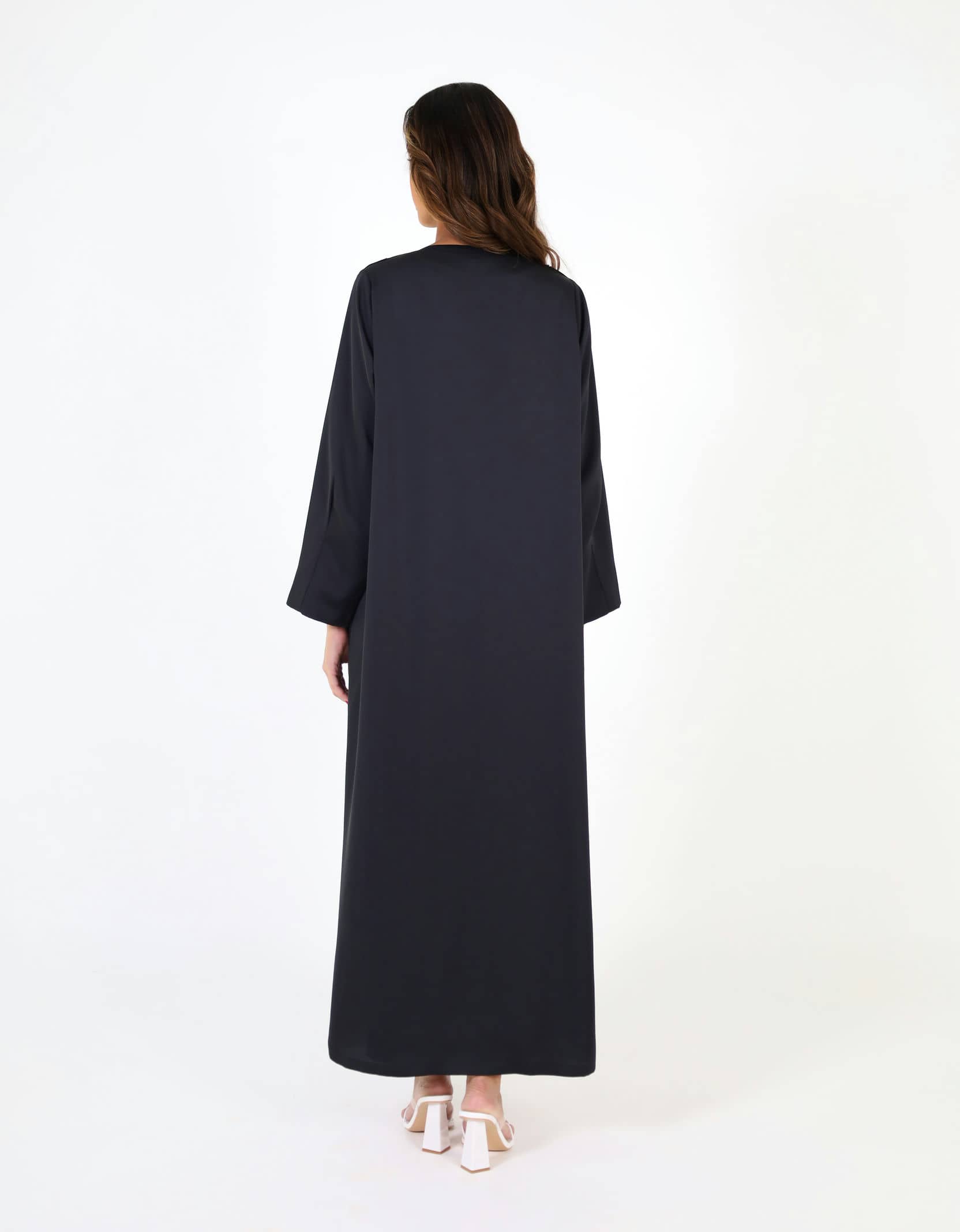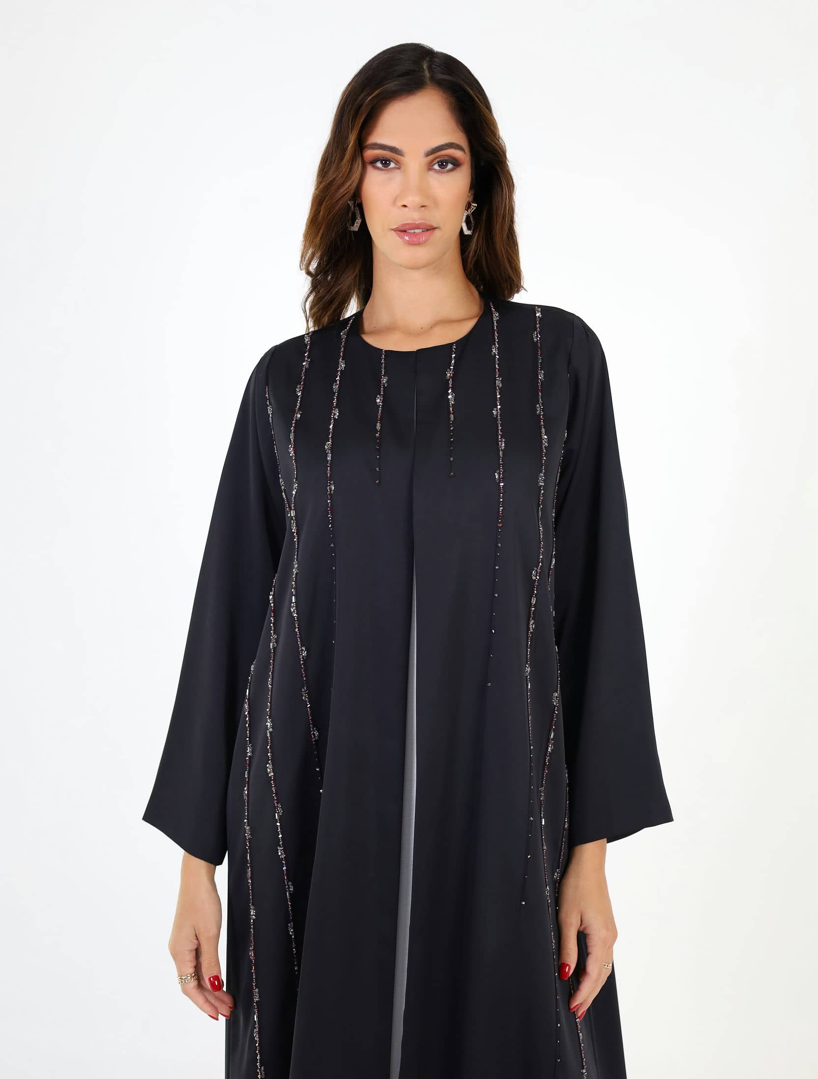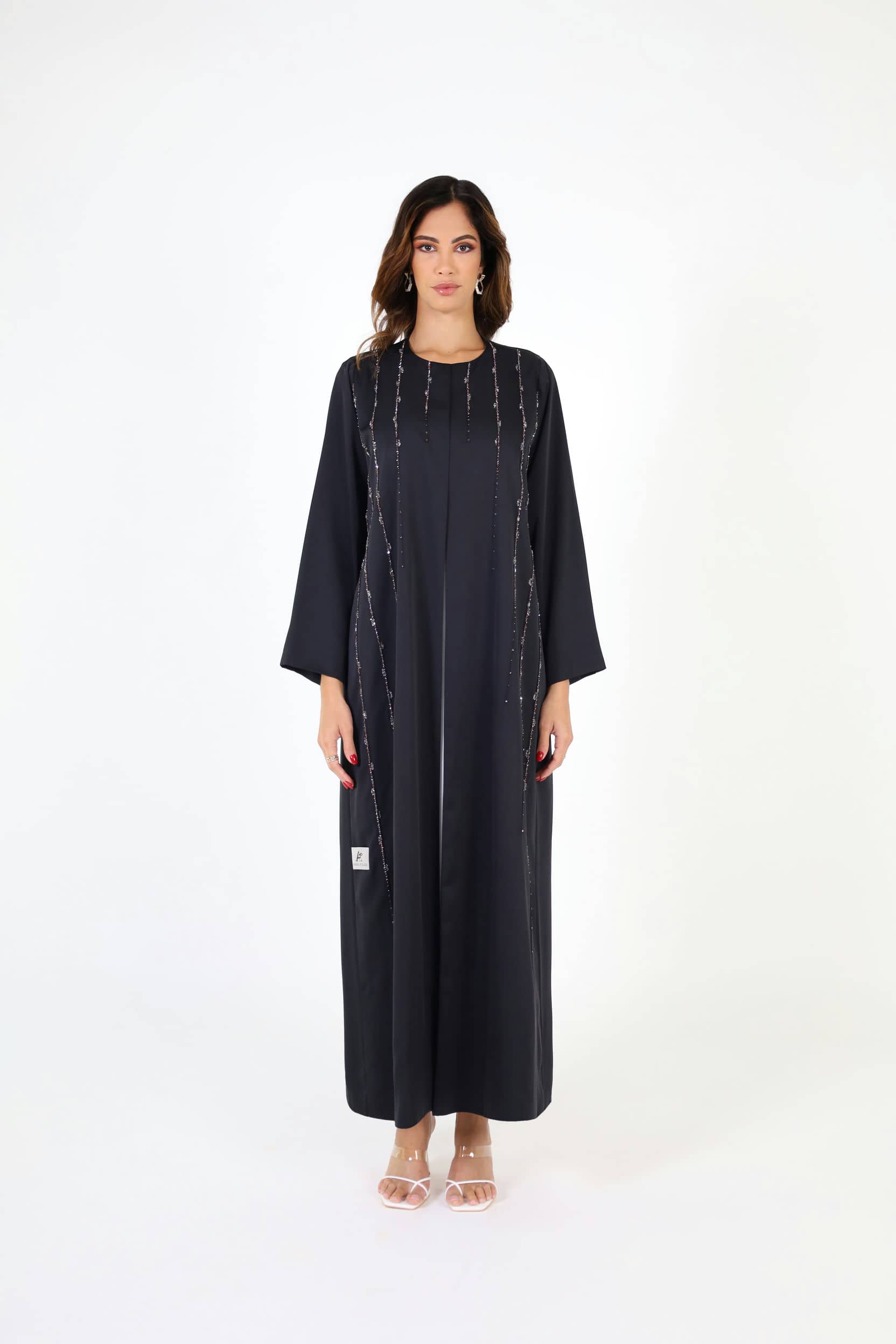 Black Abaya with Crystals Hand Embroidery Details on the Front.