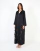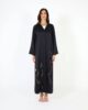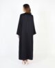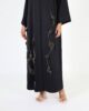 Black Abaya with Crystals Hand Embroidery and leaves Details on the front.