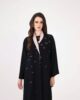 Black with peach Collared Abaya with Embroidered crystal on front.