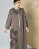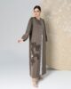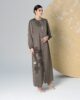Grey Abaya with Fabric Artwork and Crystals embroidery on Front Right.