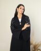 Black abaya with fabric art on sleeves and beads embroidery