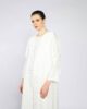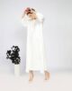 Off-white Abaya with hand embroidery crystal on front and gathering details on sleeves .