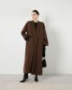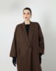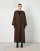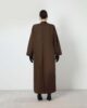 Brown wool coat with collar, back slit, button and two vertical pockets on the front.