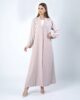 Beige with Collar Abaya with Crystalized Hand Embroidery on Sleeve and in Front Details.