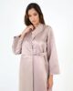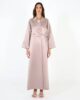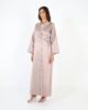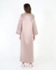Beige Coat Style Abaya with Side Buckled and Fabric Manipulation  Details on the Front .
