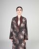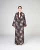 This sophisticated brown abaya features an elegant shawl collar and a rich, multi-tonal marble print, complete with a single statement button for a refined, modern silhouette.