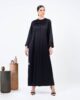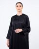 Black Abaya with Pleats Gathered and Crystals Hand Embroidery Details.