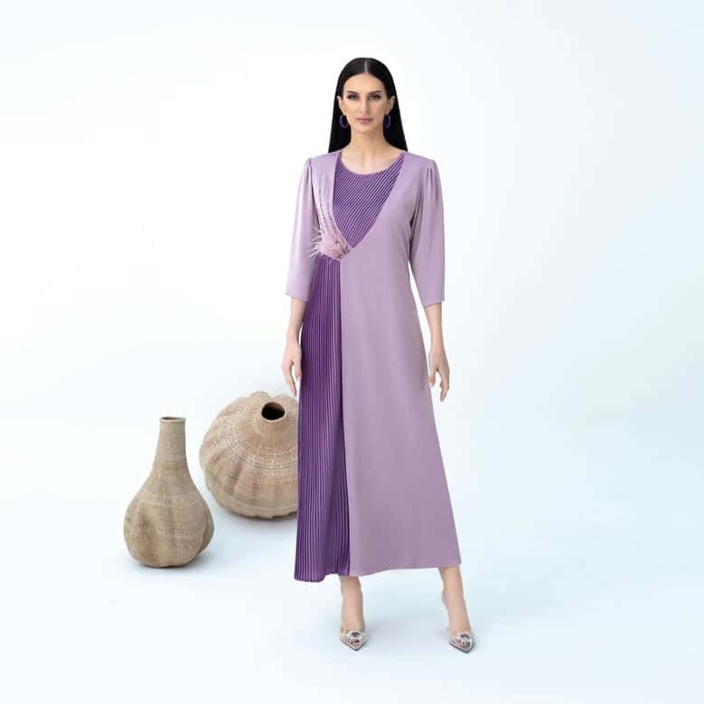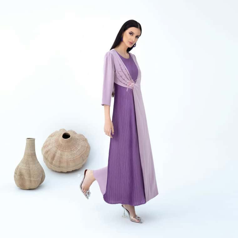 Purple Modern Kaftan with Half Pleated Textile Details on the Side.